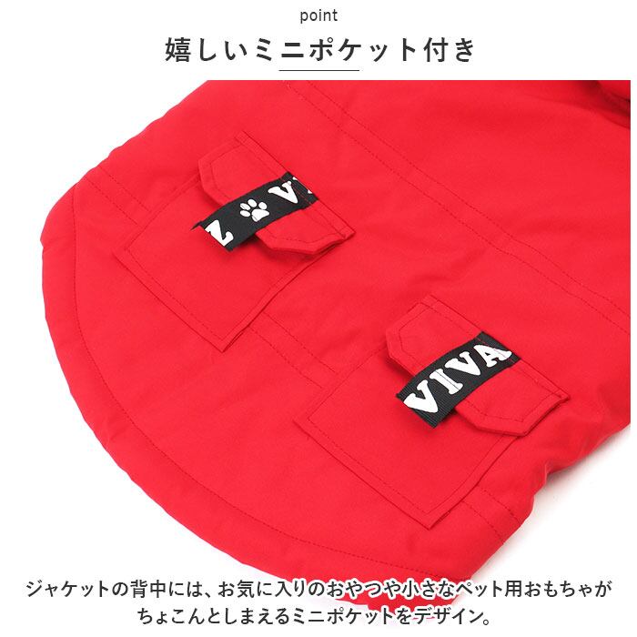 ・ジャケットの背中には、お気に入りのおやつや小さなペット用おもちゃがちょこんとしまえるミニポケットをデザイン。