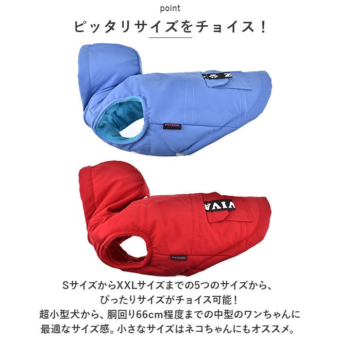 ・SサイズからXXLサイズまでの5つのサイズから、ぴったりサイズがチョイス可能!超小型犬から、胴回り66cm程度までの中型のワンちゃんに最適なサイズ感。小さなサイズはネコちゃんにもオススメ。