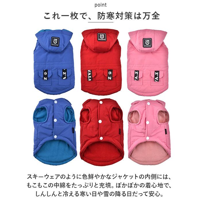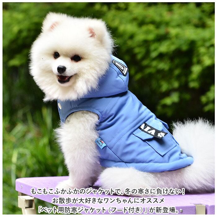 ・もこもこふかふかのジャケットで、冬の寒さに負けない!お散歩が大好きなワンちゃんにオススメ「ペット用防寒ジャケット(フード付き)」が新登場。