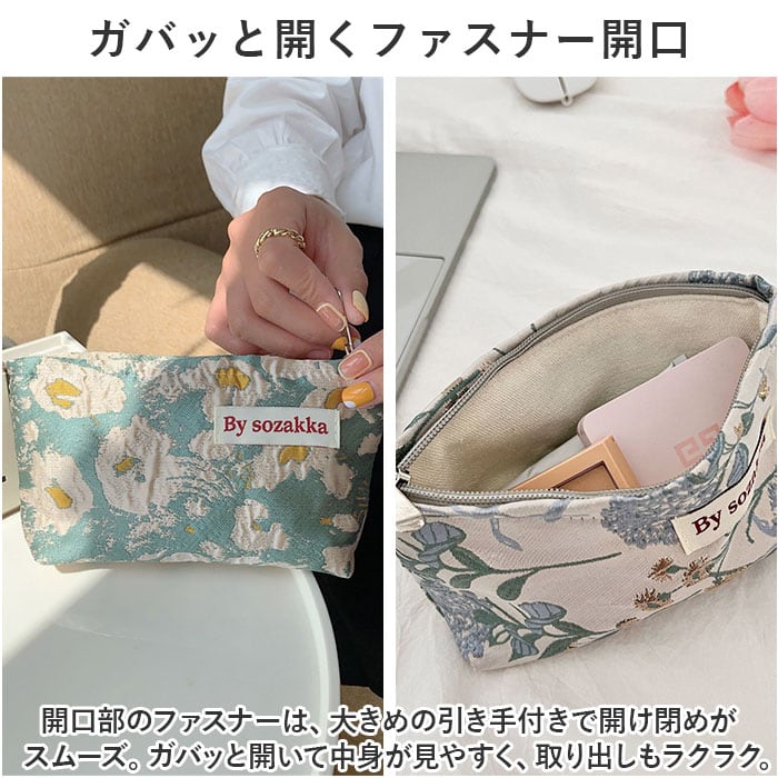 ・程よくマチがあり必要なものをしっかり収納できるポーチ。自宅での小物整理、旅行やお出かけ時に大活躍!