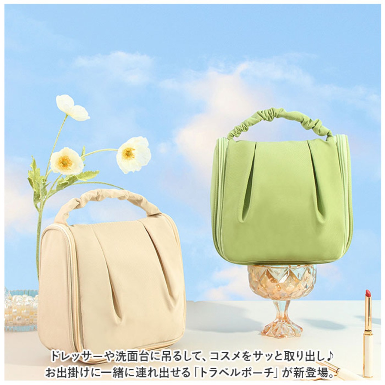 ・ドレッサーや洗面台に吊るして、コスメをサッと取り出し♪お出掛けに一緒に連れ出せる「トラベルポーチ」が新登場。