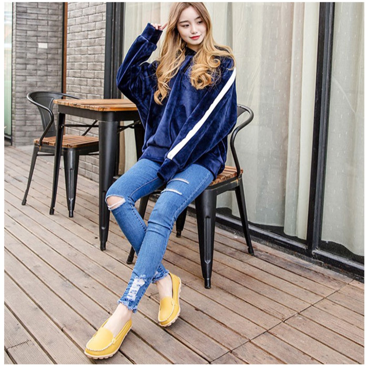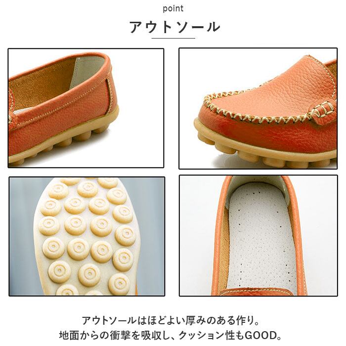 ・モカシンライクのデザインで、幅広いファッションに馴染む。カジュアルからキレイめまでマッチ。