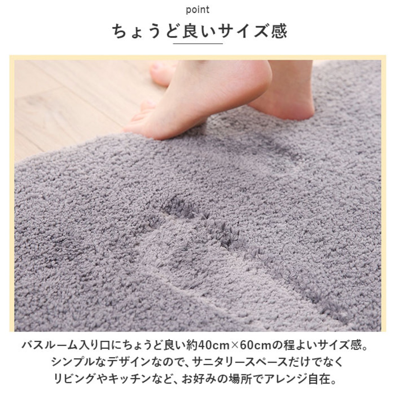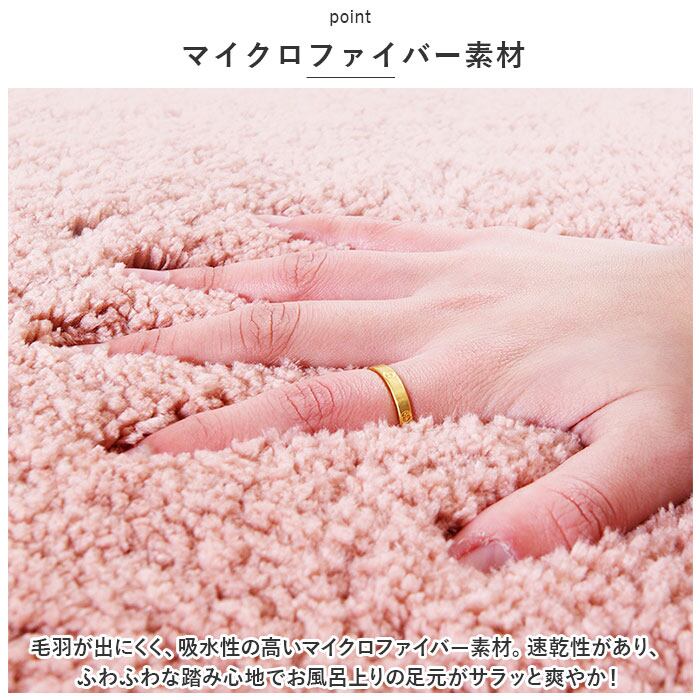 ・毛羽が出にくく、吸水性の高いマイクロファイバー素材。速乾性があり、ふわふわな踏み心地でお風呂上りの足元がサラッと爽やか!