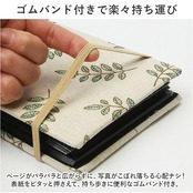 ・ページがパラパラと広がらずに、写真がこぼれ落ちる心配ナシ!表紙をピタッと押さえて、持ち歩きに便利なゴムバンド付き。