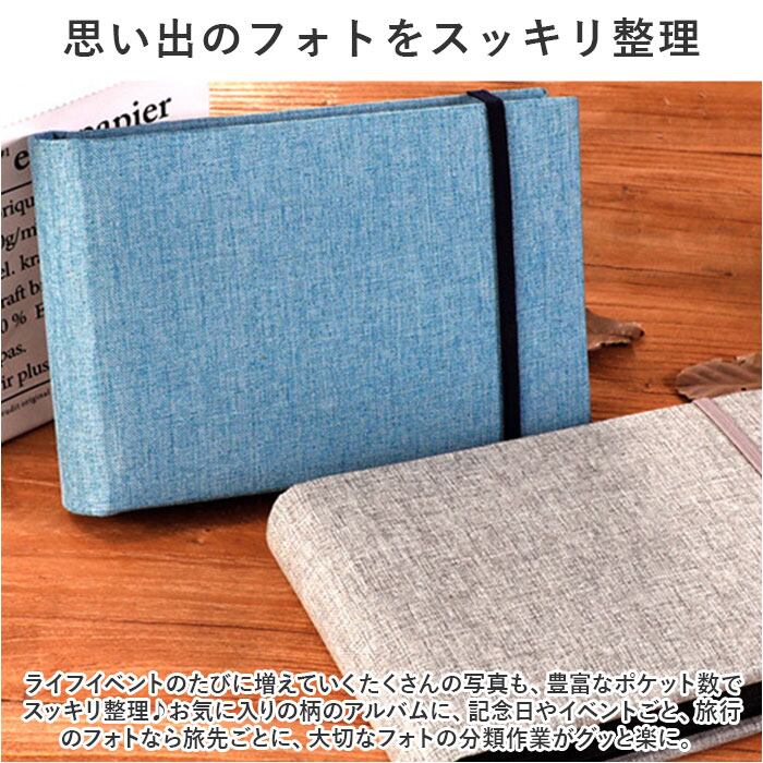 アルバム 写真 ポケット リネン 布貼り 通販 フォトアルバム スクラップブック フォトブック メモリーブック メモリーアルバム ポケットアルバム ポケット式 横型 写真整理 収納 フォト 整理 思い出 かわいい 可愛い おしゃれ 旅行 トラベル
