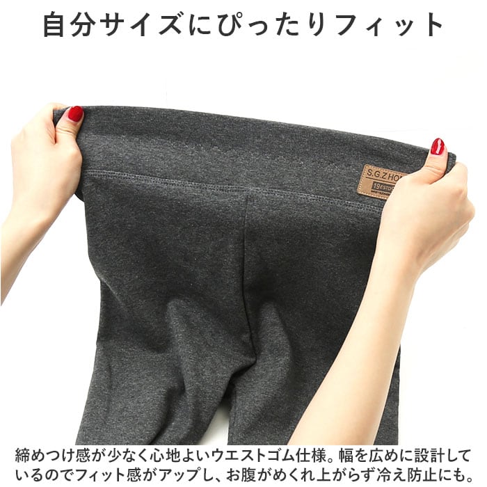 ・締めつけ感が少なく心地よいウエストゴム仕様。幅を広めに設計しているのでフィット感がアップし、お腹がめくれ上がらず冷え防止にも。