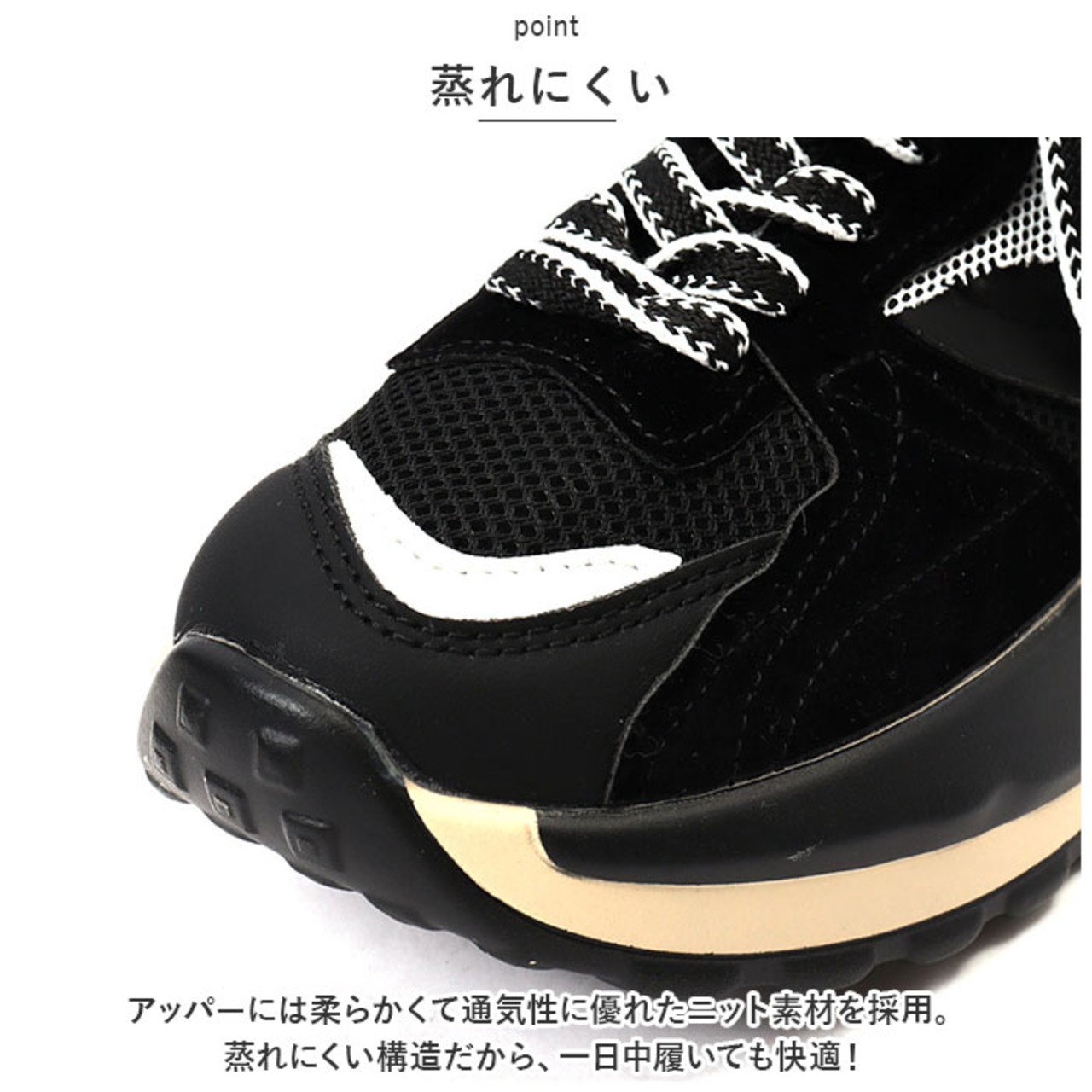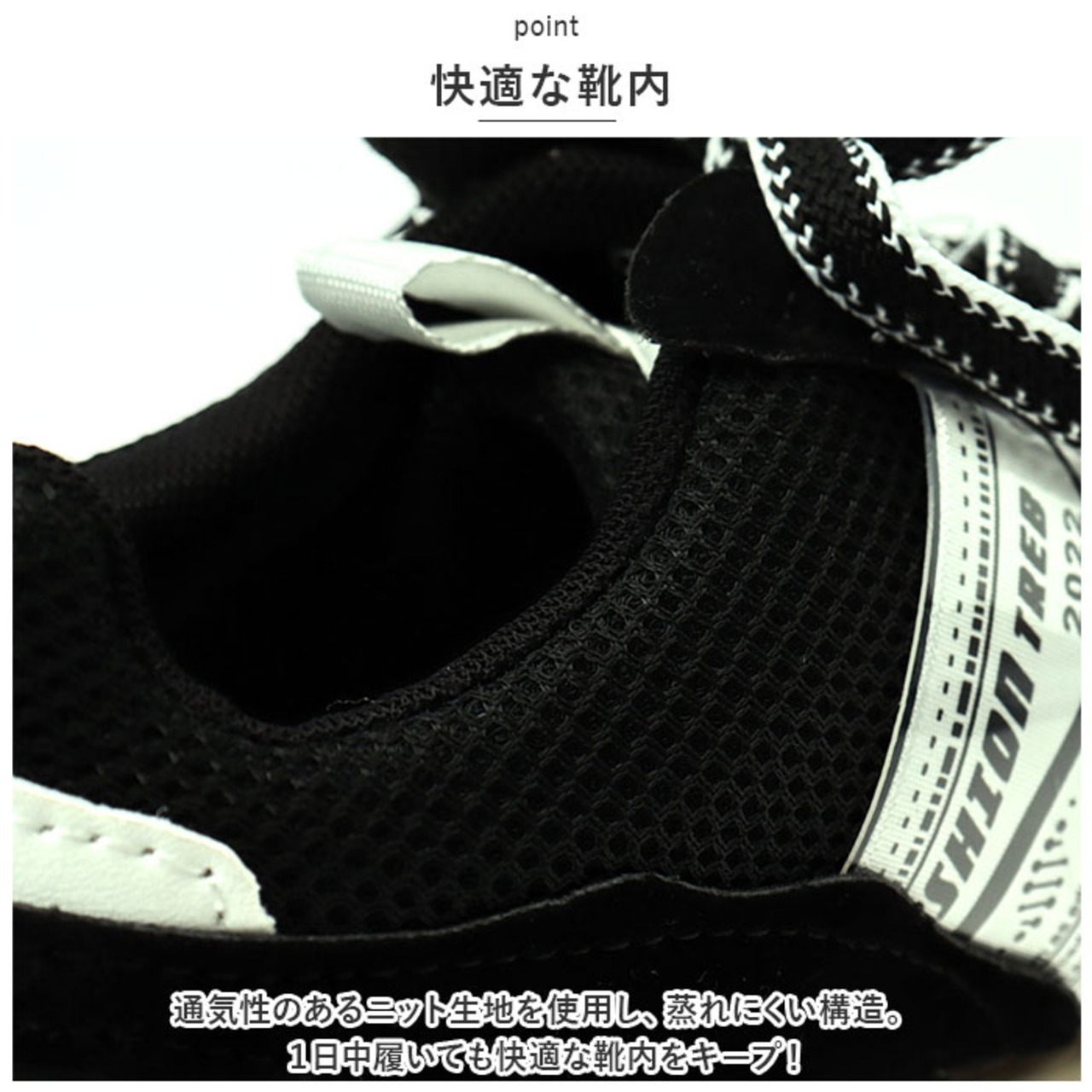 ・通気性のあるニット生地を使用し、蒸れにくい構造。1日中履いても快適な靴内をキープ!