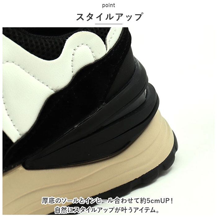 ・厚底のソールとインヒール合わせて約5cmUP!自然にスタイルアップが叶うアイテム。