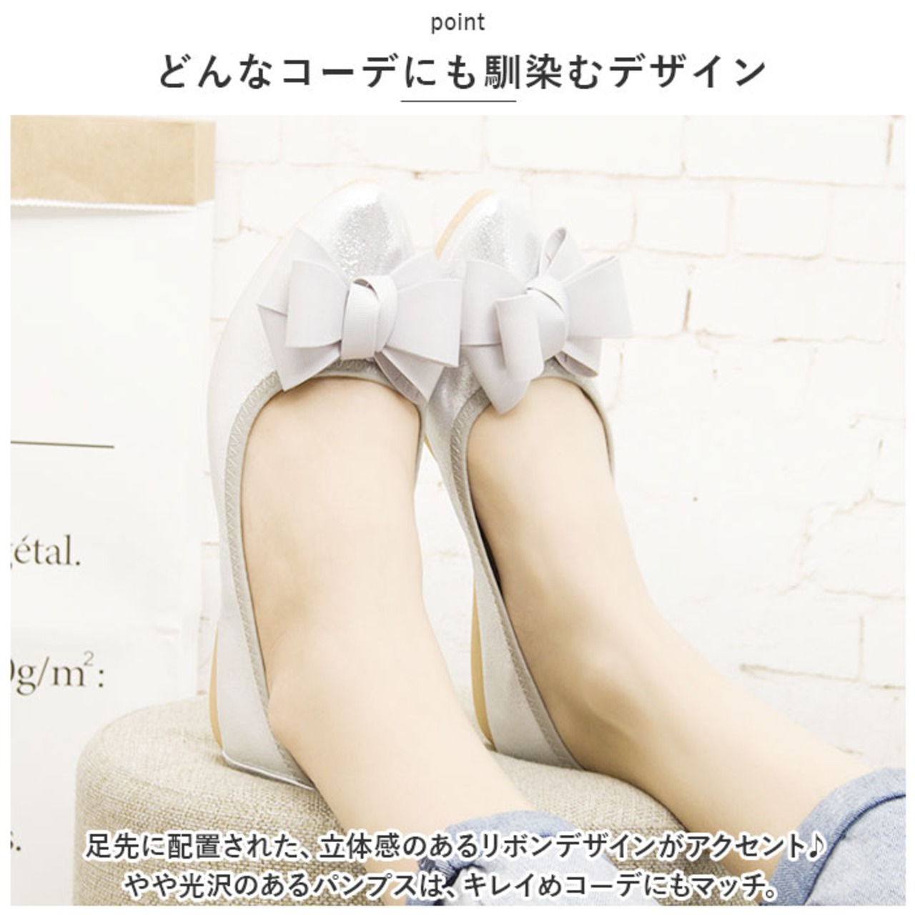 ・コンパクトに折りたためて、持ち歩きに便利!ストレスフリーな履き心地の、リボンパンプスが新登場。