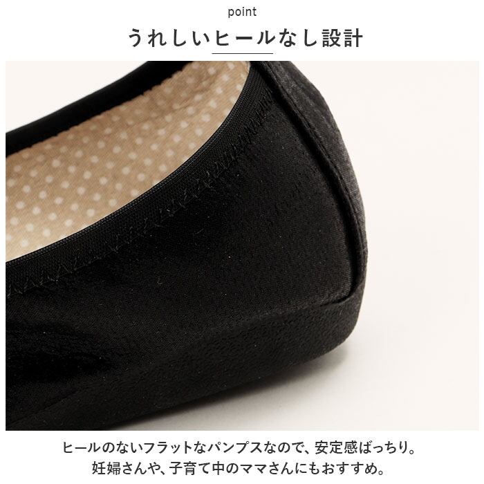 ・ヒールのないフラットなパンプスなので、安定感ばっちり。妊婦さんや、子育て中のママさんにもおすすめ。