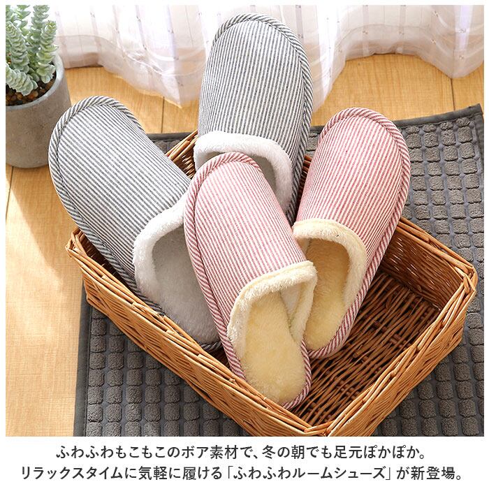 ・ふわふわもこもこのボア素材で、冬の朝でも足元ぽかぽか。リラックスタイムに気軽に履ける「ふわふわルームシューズ」が新登場。