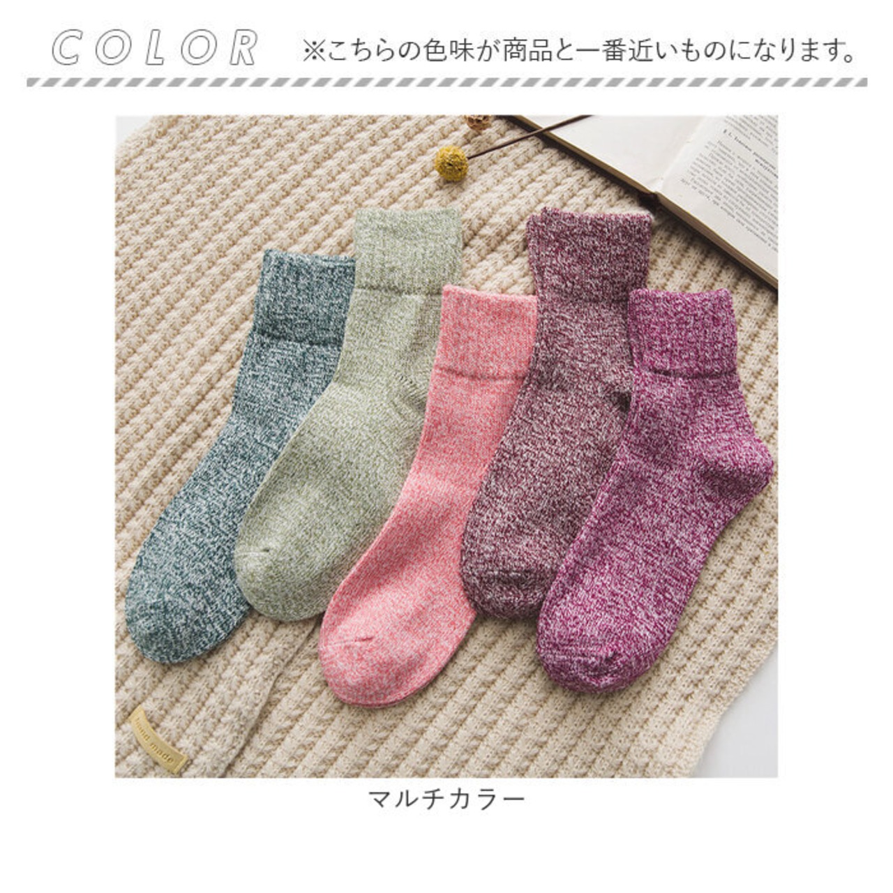 ・可愛い5カラー☆ちょうどいいクルー丈であったかい♪ レディース靴下 5足セットが登場。