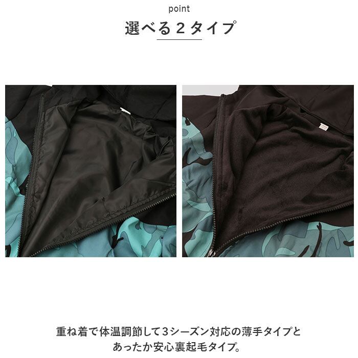 ・重ね着で体温調節して3シーズン対応の薄手タイプとあったか安心裏起毛タイプ。