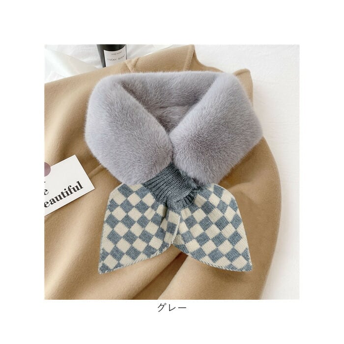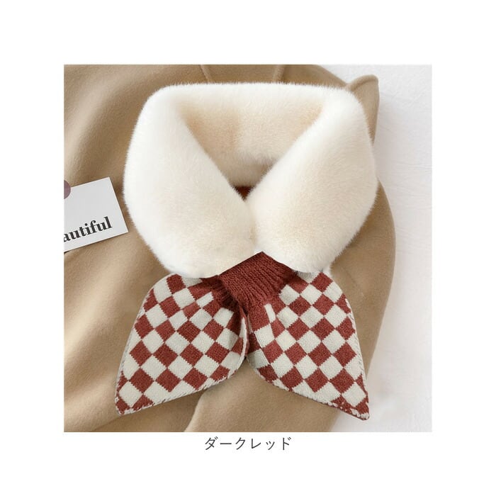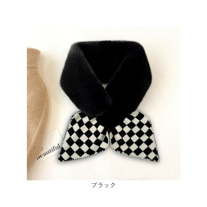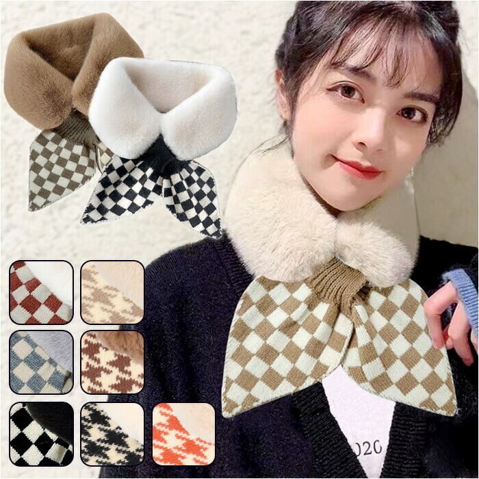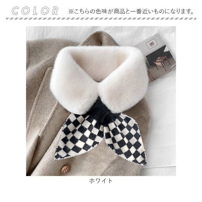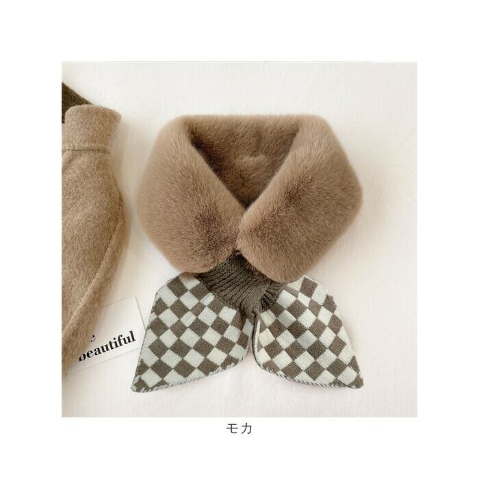 ファー ティペット 通販 マフラー ショートマフラー スヌード レディース フェイクファー ネックウォーマー シンプル チェック柄 保温 防寒 もこもこ 暖かい 柔らかい 襟 差し込み ボリューム ドレス フォーマル かわいい おしゃれ オシャレ 秋 冬