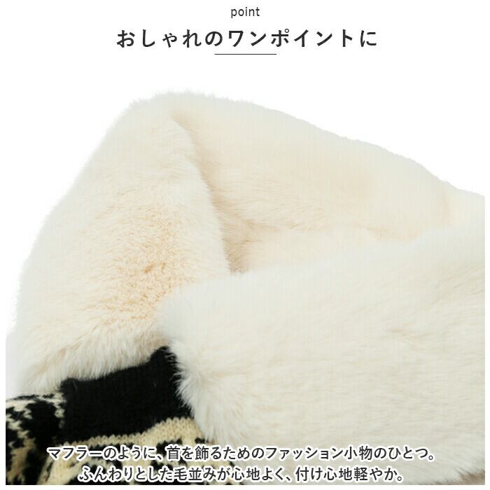 ・マフラーのように、首を飾るためのファッション小物のひとつ。ふんわりとした毛並みが心地よく、付け心地軽やか。