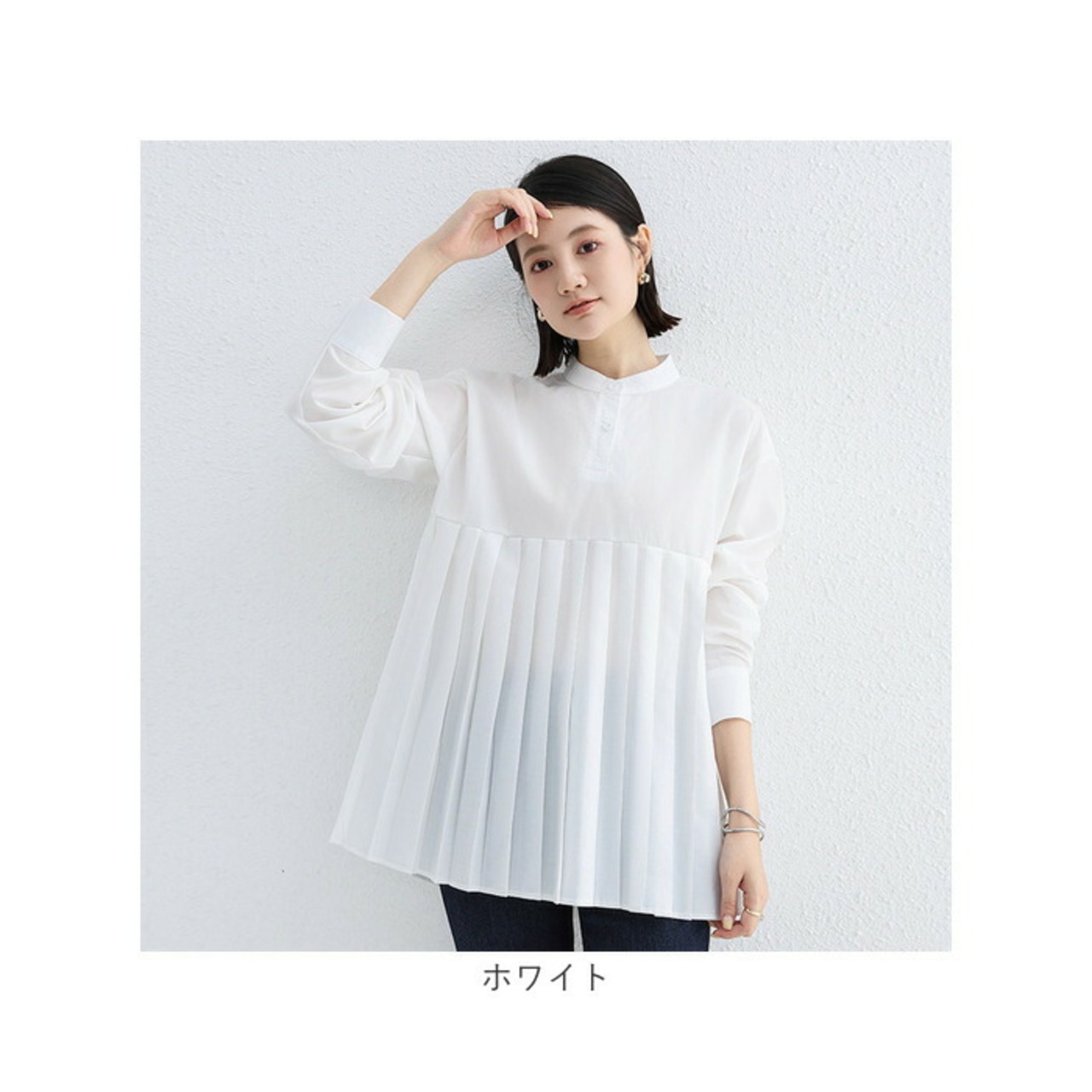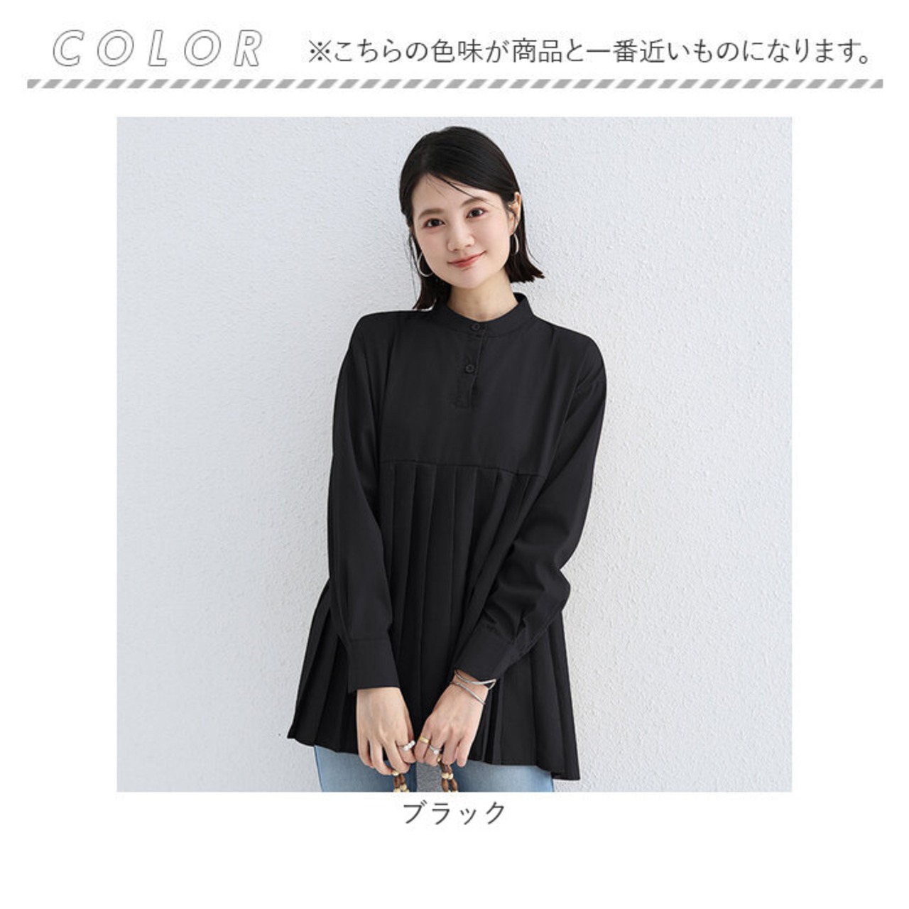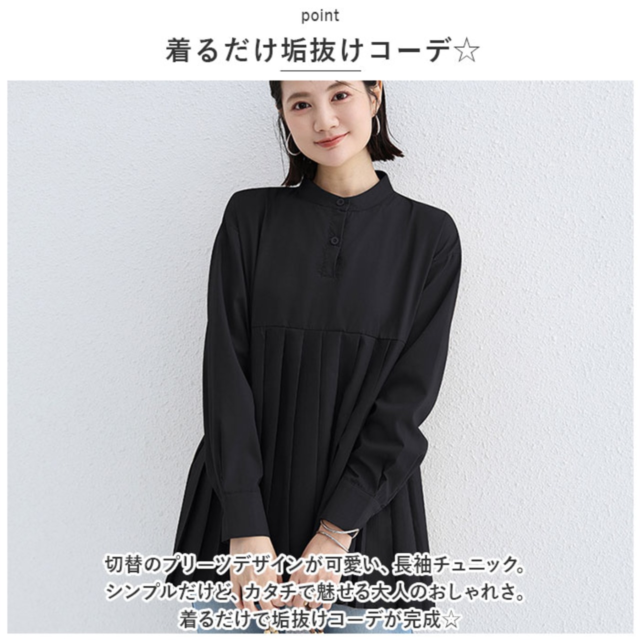 ・切替のプリーツデザインが可愛い、長袖チュニック。シンプルだけど、カタチで魅せる大人のおしゃれさ。着るだけで垢抜けコーデが完成☆