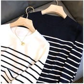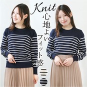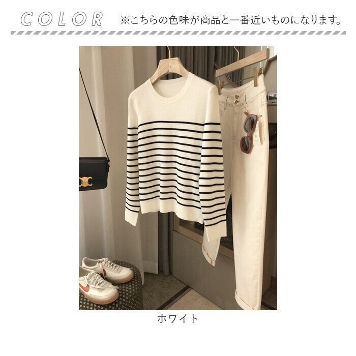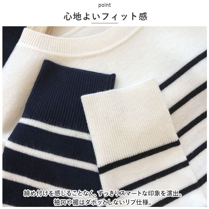 ボーダー ニット 通販 カットソー ニットソー トップス 長袖 Tシャツ ロンt レディース ラウンドネック 袖リブ 通勤 通学 オフィス カジュアル ナチュラル きれいめ 上品 シンプル おしゃれ オシャレ かわいい カワイイ