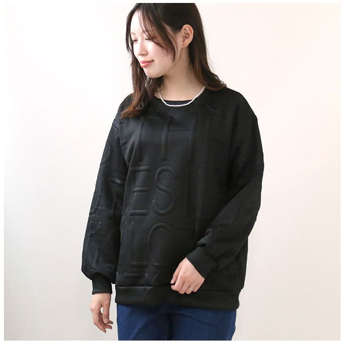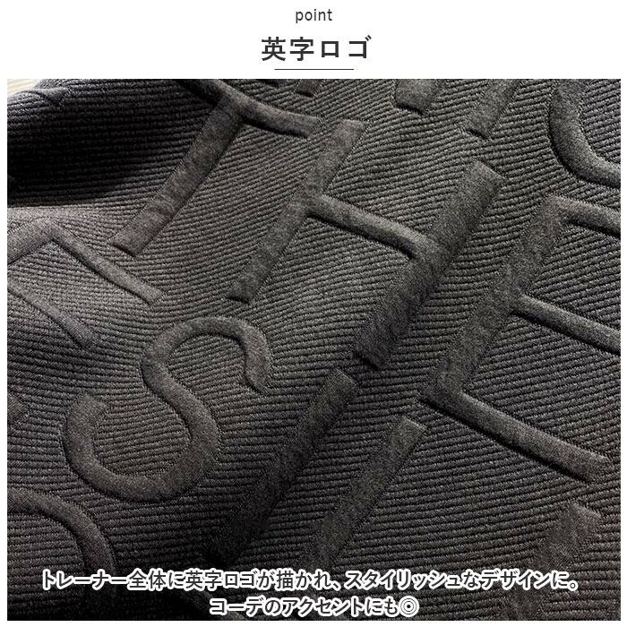 ・トレーナー全体に英字ロゴが描かれ、スタイリッシュなデザインに。コーデのアクセントにも◎