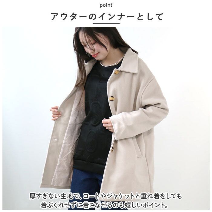 ・厚すぎない生地で、コートやジャケットと重ね着をしても着ぶくれせずに着こなせるのも嬉しいポイント。