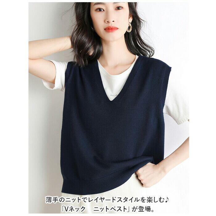・薄手のニットでレイヤードスタイルを楽しむ♪「Vネック ニットベスト」が登場。