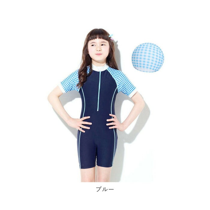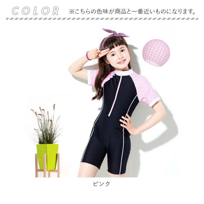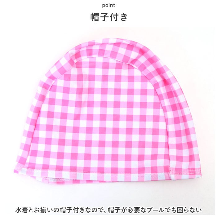 ・水着とお揃いの帽子付きなので、帽子が必要なプールでも困らない。