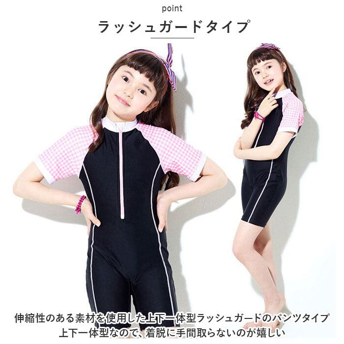 ・プールや川、海などの水遊びシーンにぴったりな上下一体型ラッシュガードタイプの水着が登場。