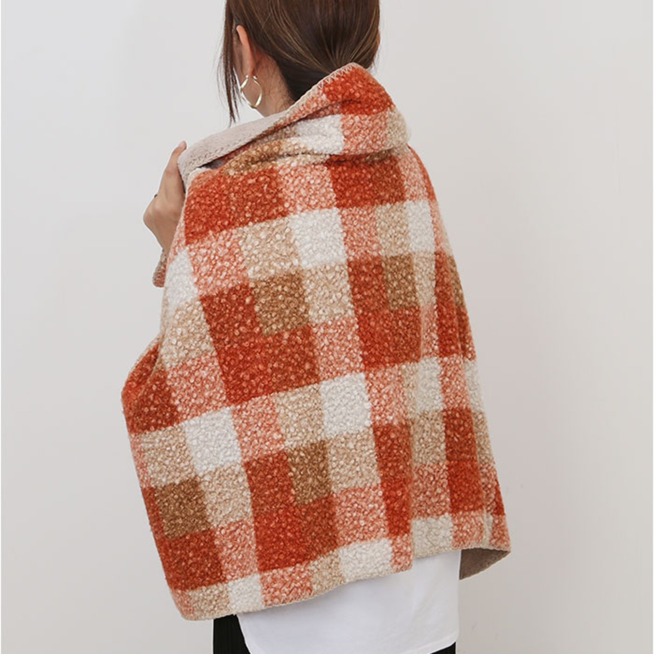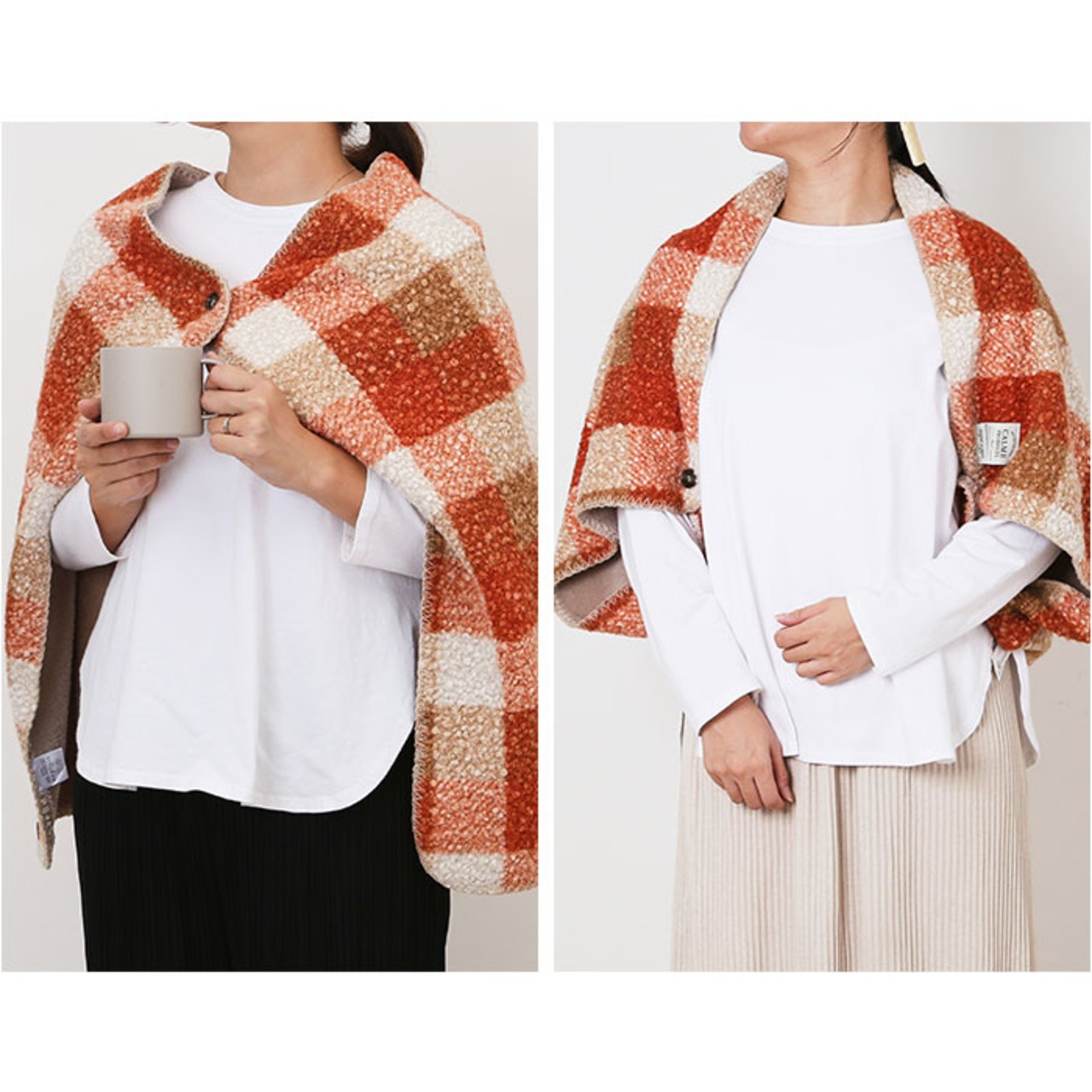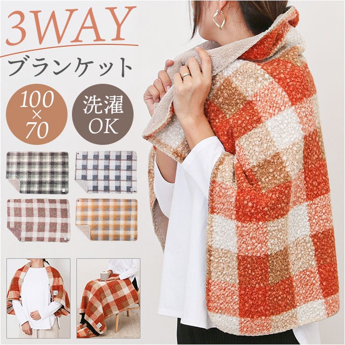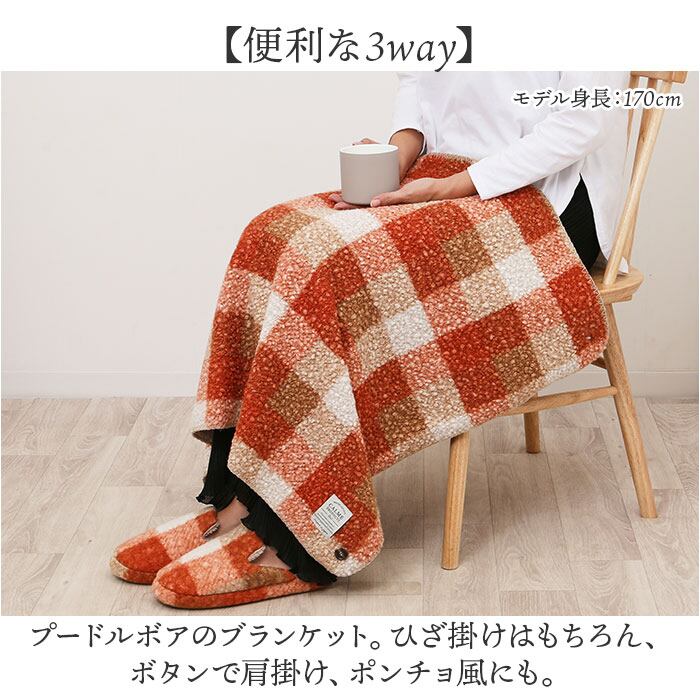 ・プードルボアのブランケット。ひざ掛けはもちろん、ボタンで肩掛け、ポンチョ風にも。