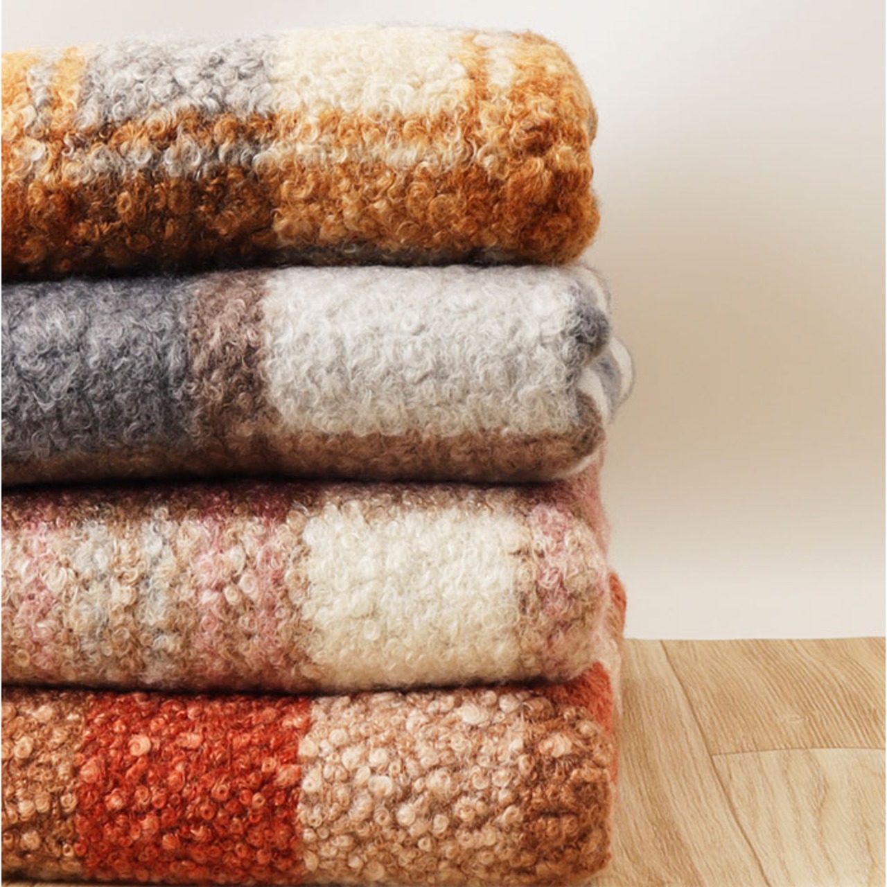 カルム プードルボアチェックブランケット