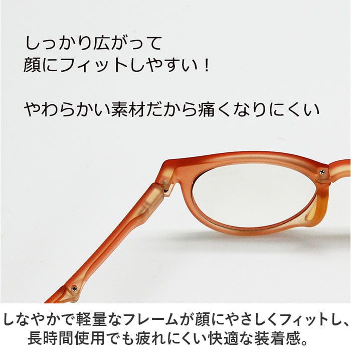 ・しなやかで軽量なフレームが顔にやさしくフィットし、長時間使用でも疲れにくい快適な装着感