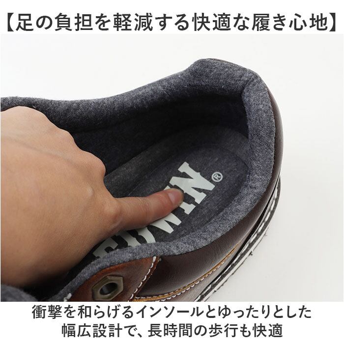 ・衝撃を和らげるインソールとゆったりとした幅広設計で、長時間の歩行も快適