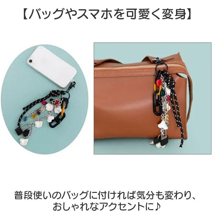 ・フックやキーリングで簡単につけられるマルチチャームストラップ。