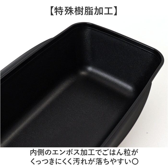 ・内側のエンボス加工でごはん粒がくっつきにくく汚れが落ちやすい〇