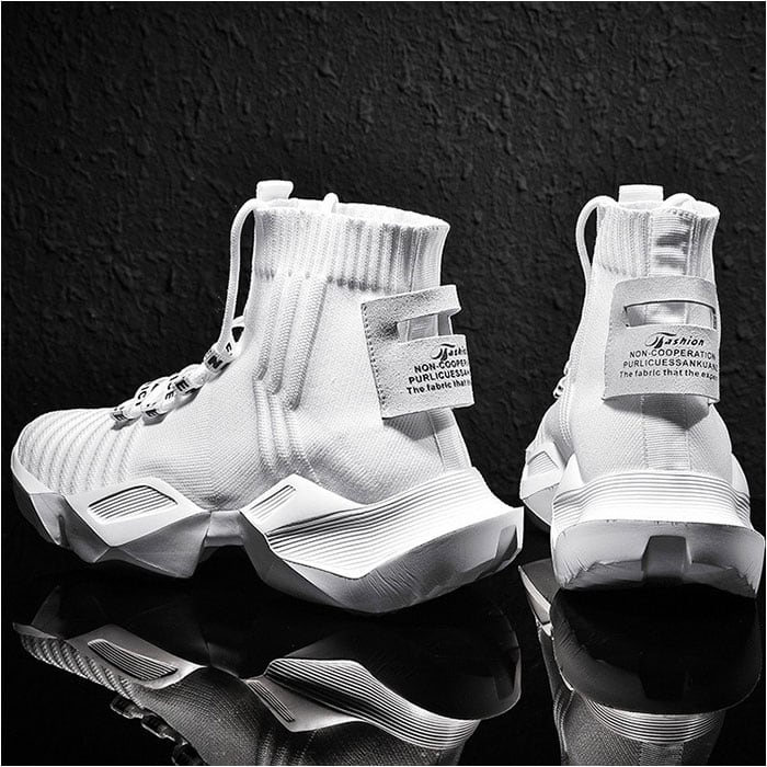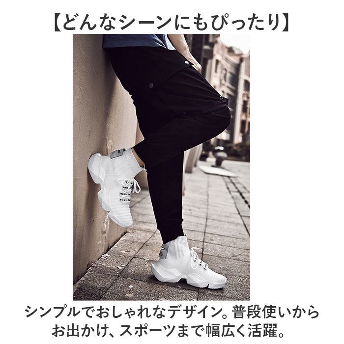 ・シンプルなコーデに華やかさをプラス。ストリートスタイルにぴったりな「ハイカット ニット スニーカー」