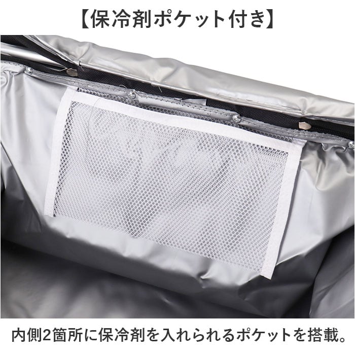 ・内側2箇所に保冷剤を入れられるポケットを搭載。