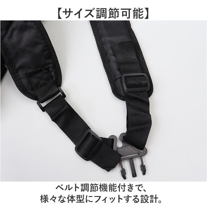 ・ベルト調節機能付きで、様々な体型にフィットする設計。