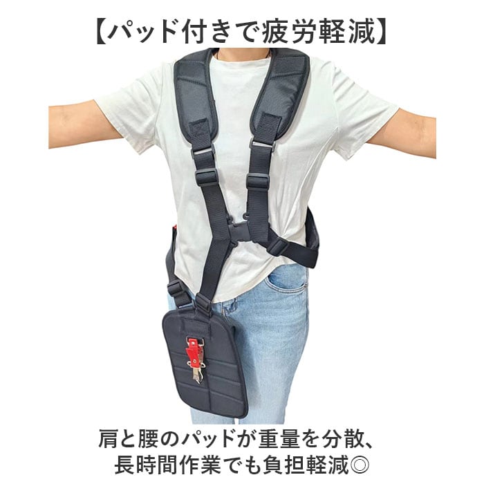 ・肩と腰のパッドが重量を分散、長時間作業でも負担軽減◎