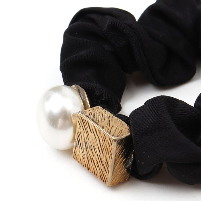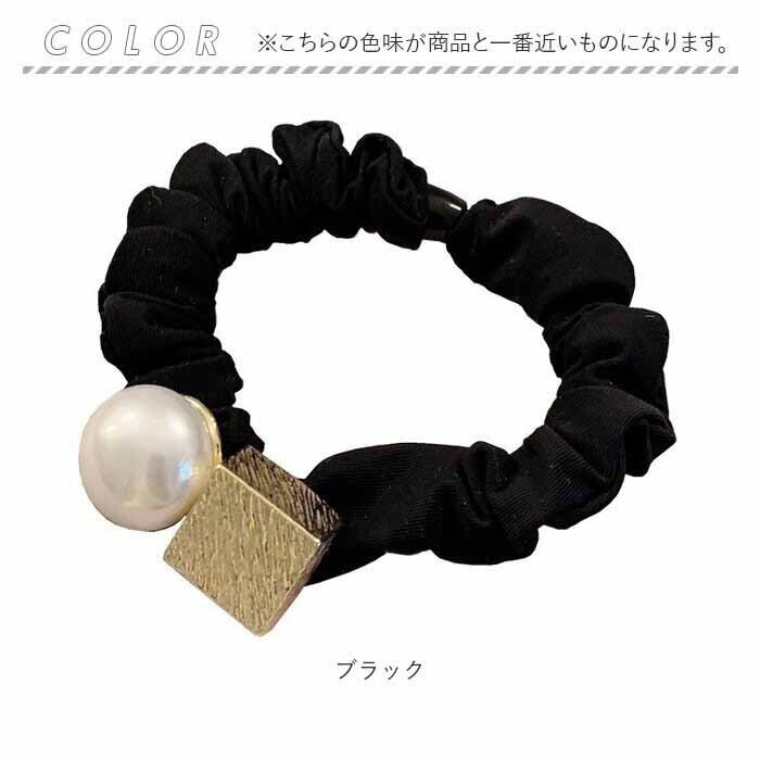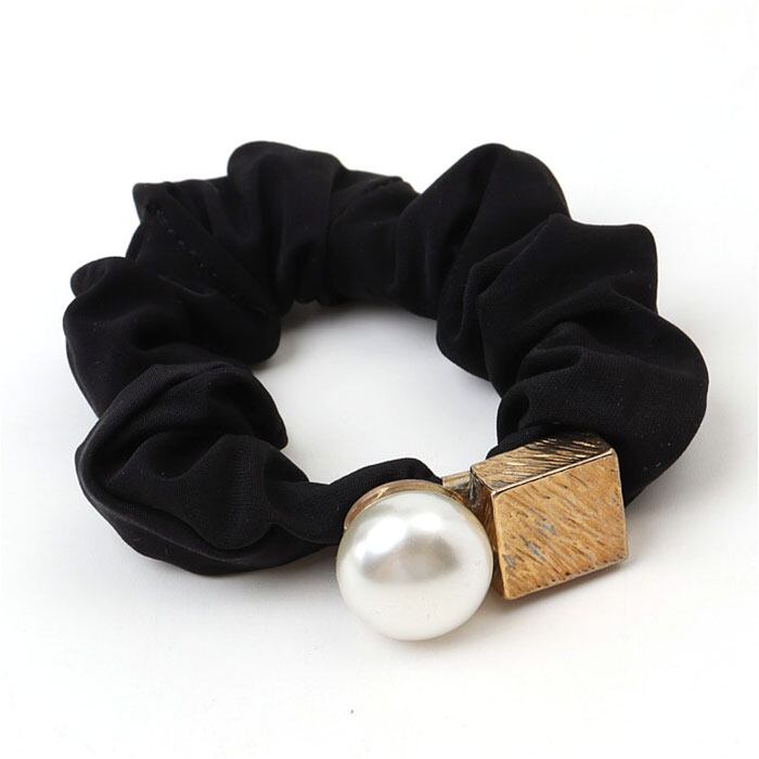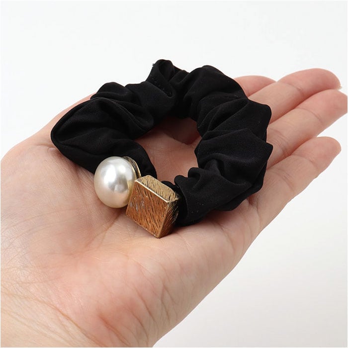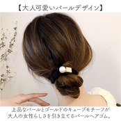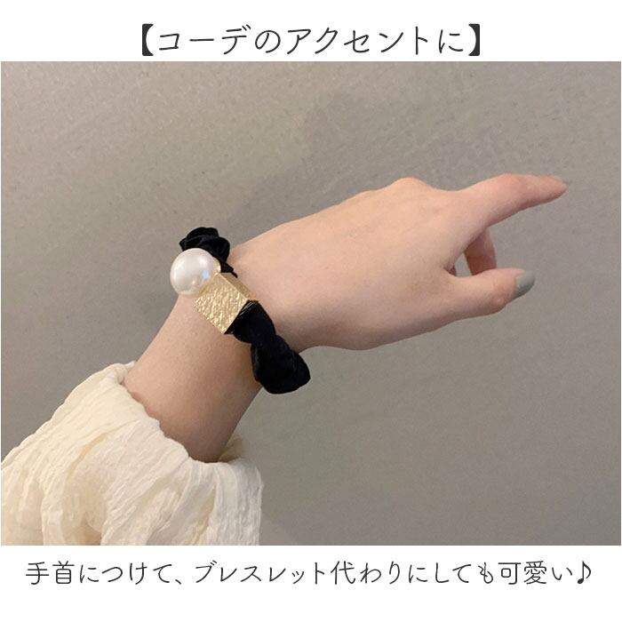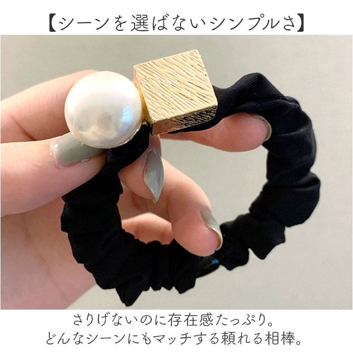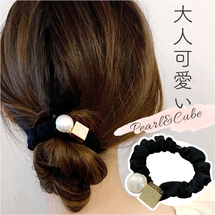 ・上品なパールとゴールドのキューブモチーフが大人の女性らしさを引き立てるパールヘアゴム。
