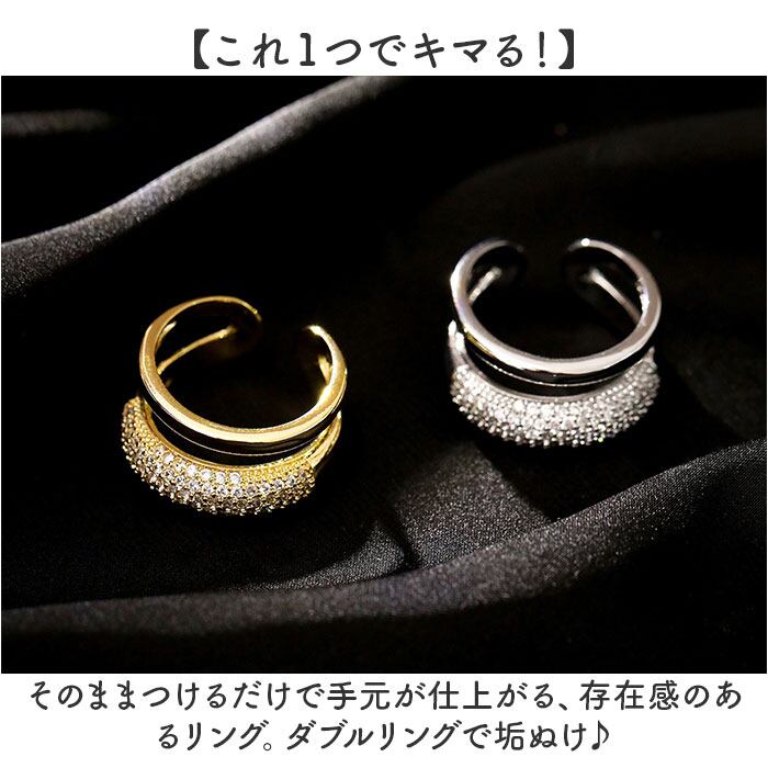 ・そのままつけるだけで手元が仕上がる、存在感のあるリング。ダブルリングで垢ぬけ♪