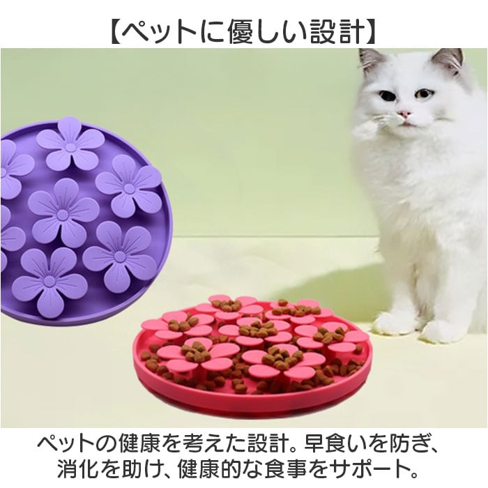 ・ペットの健康を考えた設計。早食いを防ぎ、消化を助け、健康的な食事をサポート。