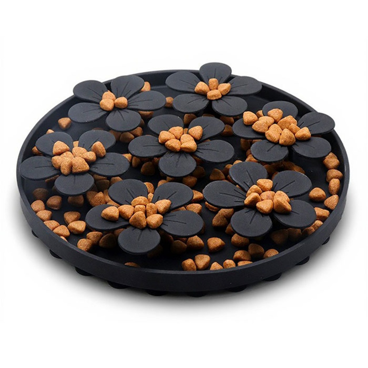 ・花のデザインが食事を小分けにし、早食いを防止。