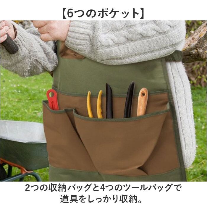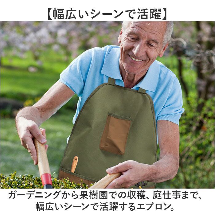 ・ガーデニングから果樹園での収穫、庭仕事まで、幅広いシーンで活躍するエプロン。