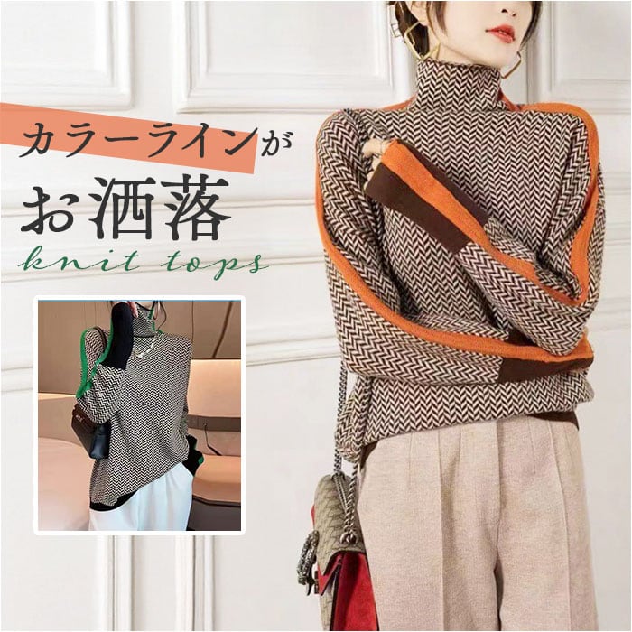 ・カラーラインが映える、こなれニット「ニットトップス ハイネック」が登場。