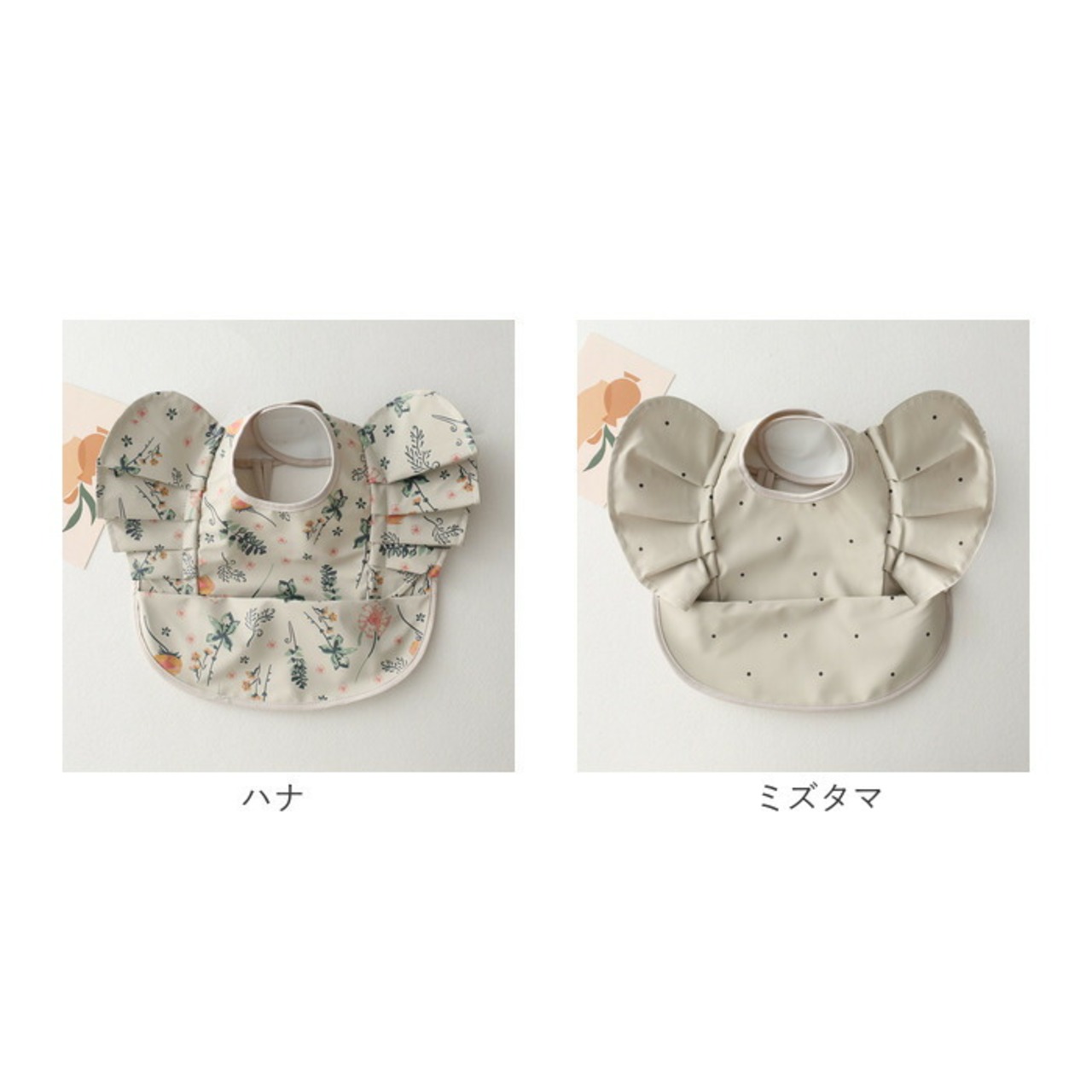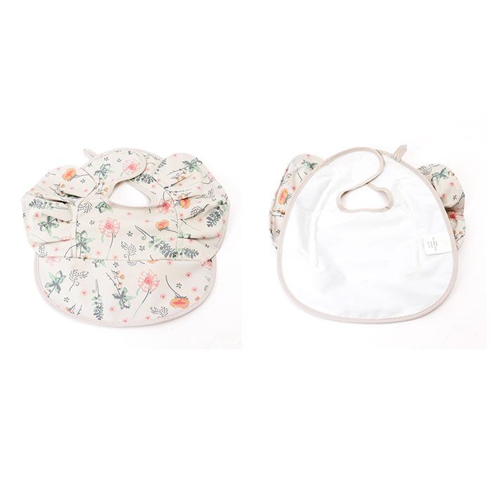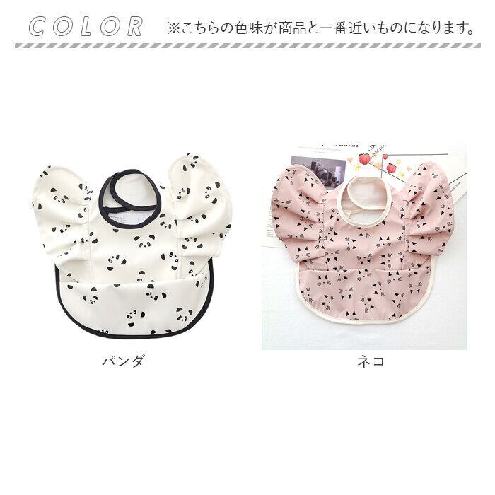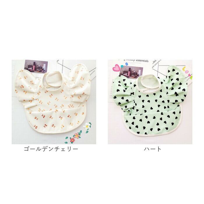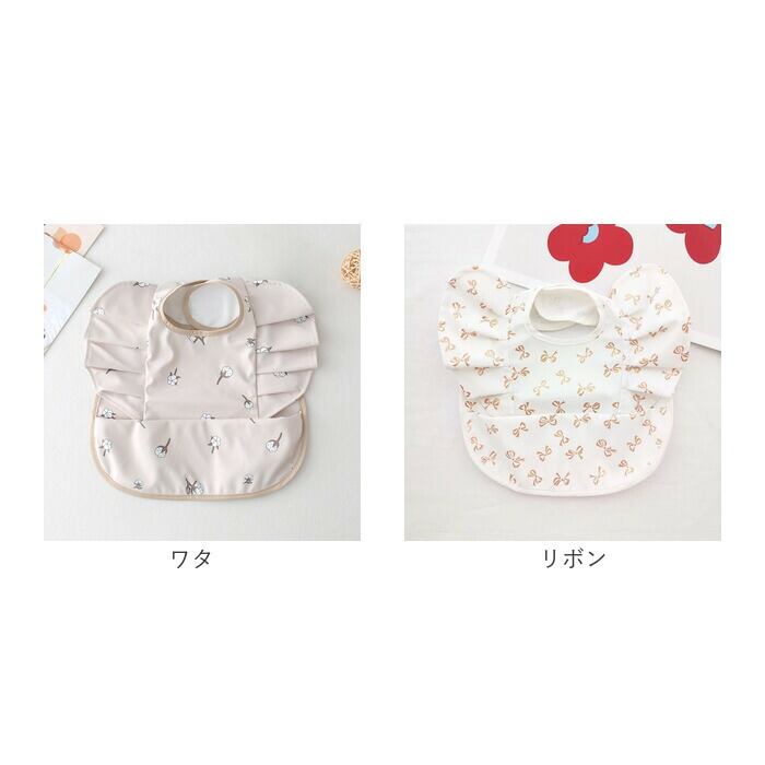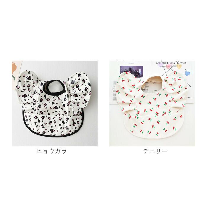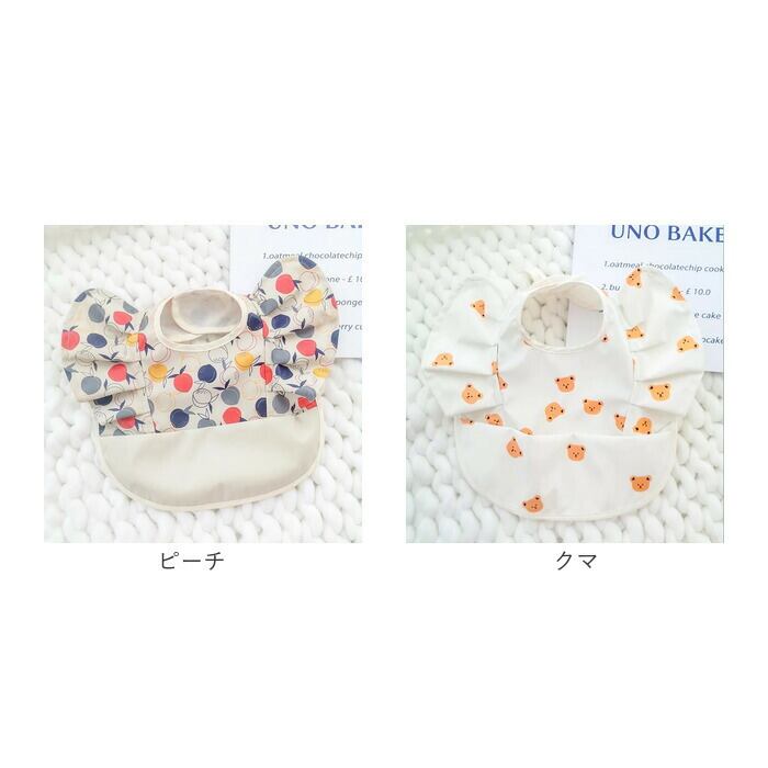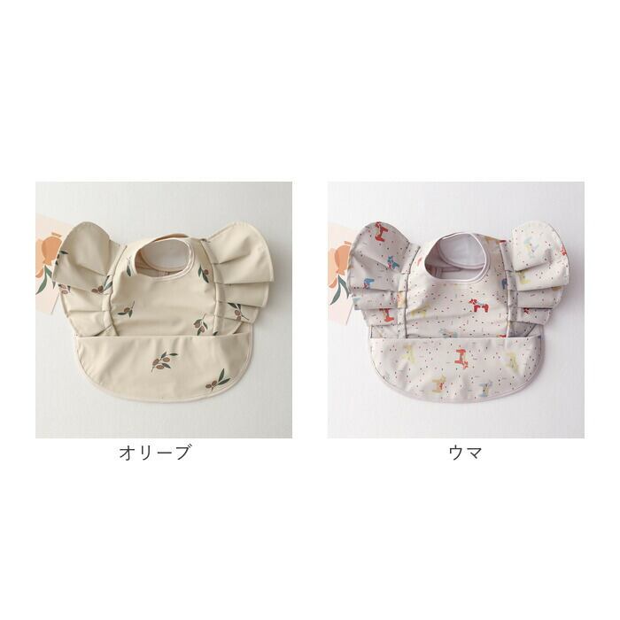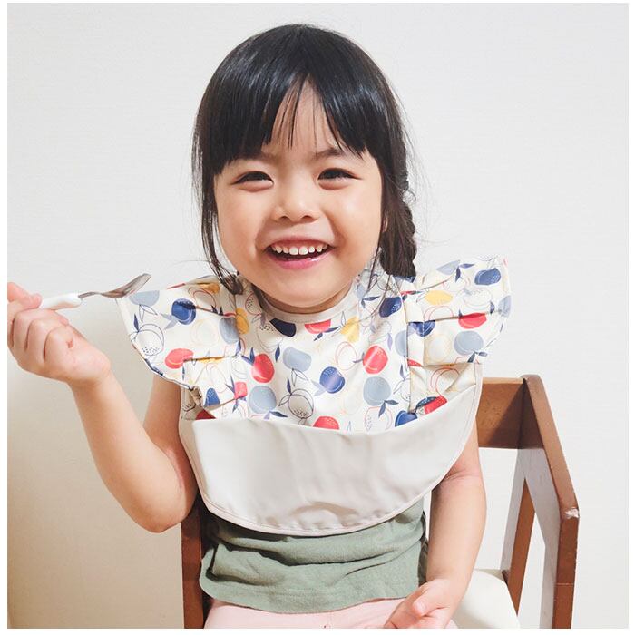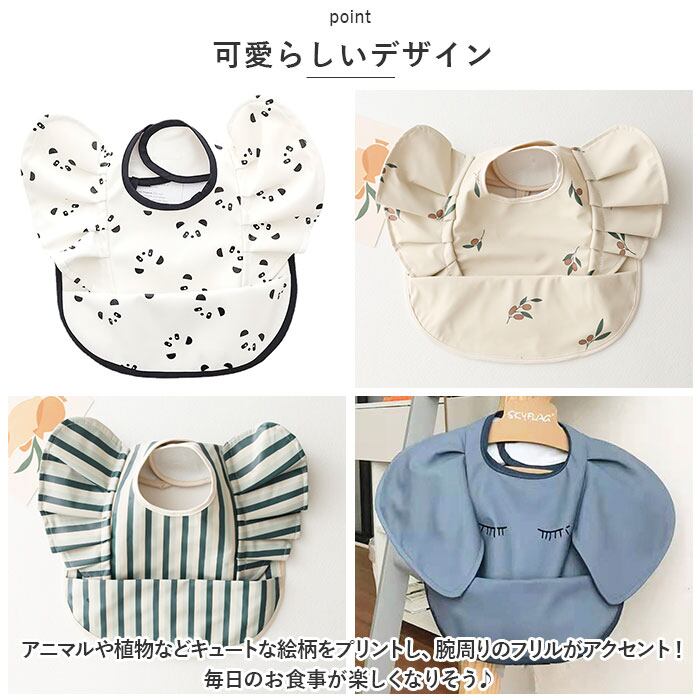 ・アニマルや植物などキュートな絵柄をプリントし、腕周りのフリルがアクセント!毎日のお食事が楽しくなりそう♪