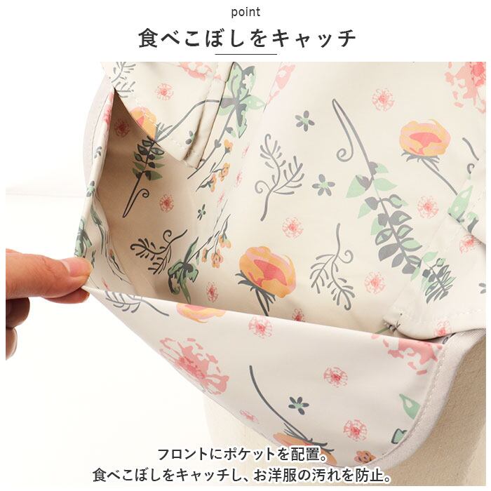 ・フロントにポケットを配置。食べこぼしをキャッチし、お洋服の汚れを防止。