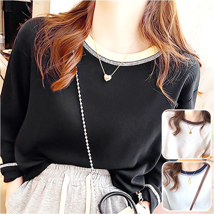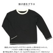 ・裏返しのようなステッチデザイン&ゆるっと感のあるシルエット。バイカラーの襟リブが程よいアクセントに。
