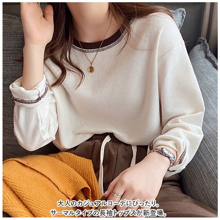 カットソー 長袖 レディース 通販 シャツ カットソー ロンT サーマル ティシャツ ワッフル トップス Tシャツ 通勤 通学 無地 シンプル カジュアル きれいめ おしゃれ 大人 可愛い 春 夏 秋