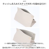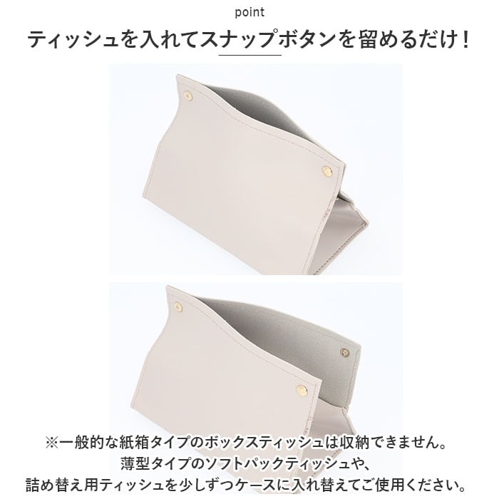 ・ティッシュを入れてスナップボタンを留めるだけ!簡単にセットできるのも嬉しいポイント。