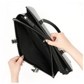 ・開口部は天ファスナータイプだから、中に入れたものが飛び出さず、プライバシーもしっかり確保。