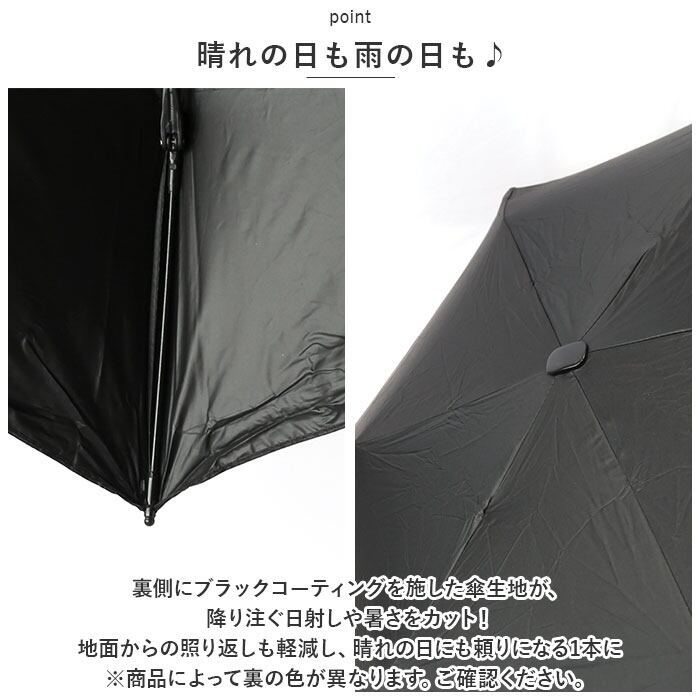 ・裏側にブラックコーティングを施した傘生地が、降り注ぐ日射しや暑さをカット!地面からの照り返しも軽減し、晴れの日にも頼りになる1本に。