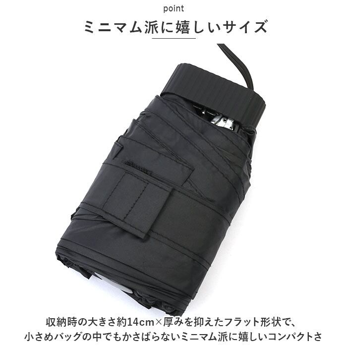・収納時の大きさ約14cm×厚みを抑えたフラット形状で、小さめバッグの中でもかさばらないミニマム派に嬉しいコンパクトさ。